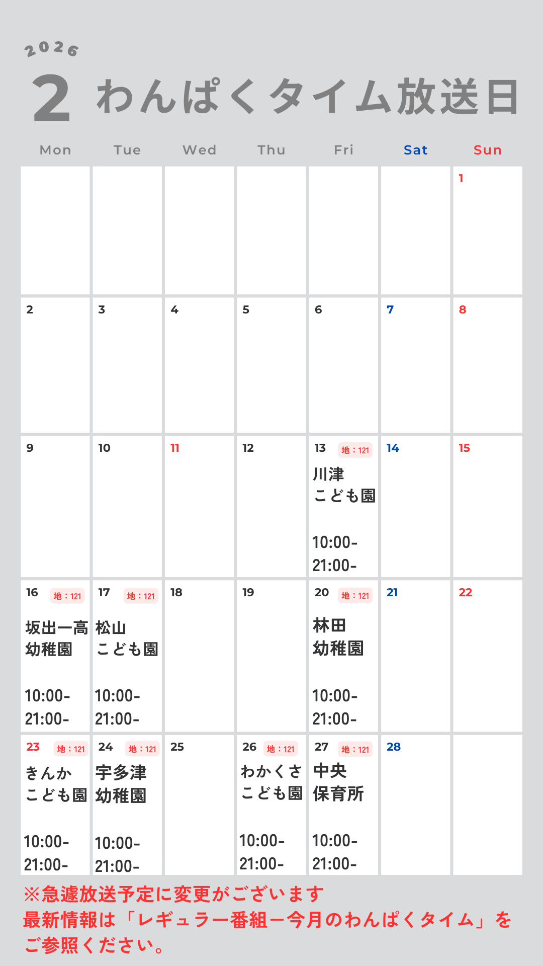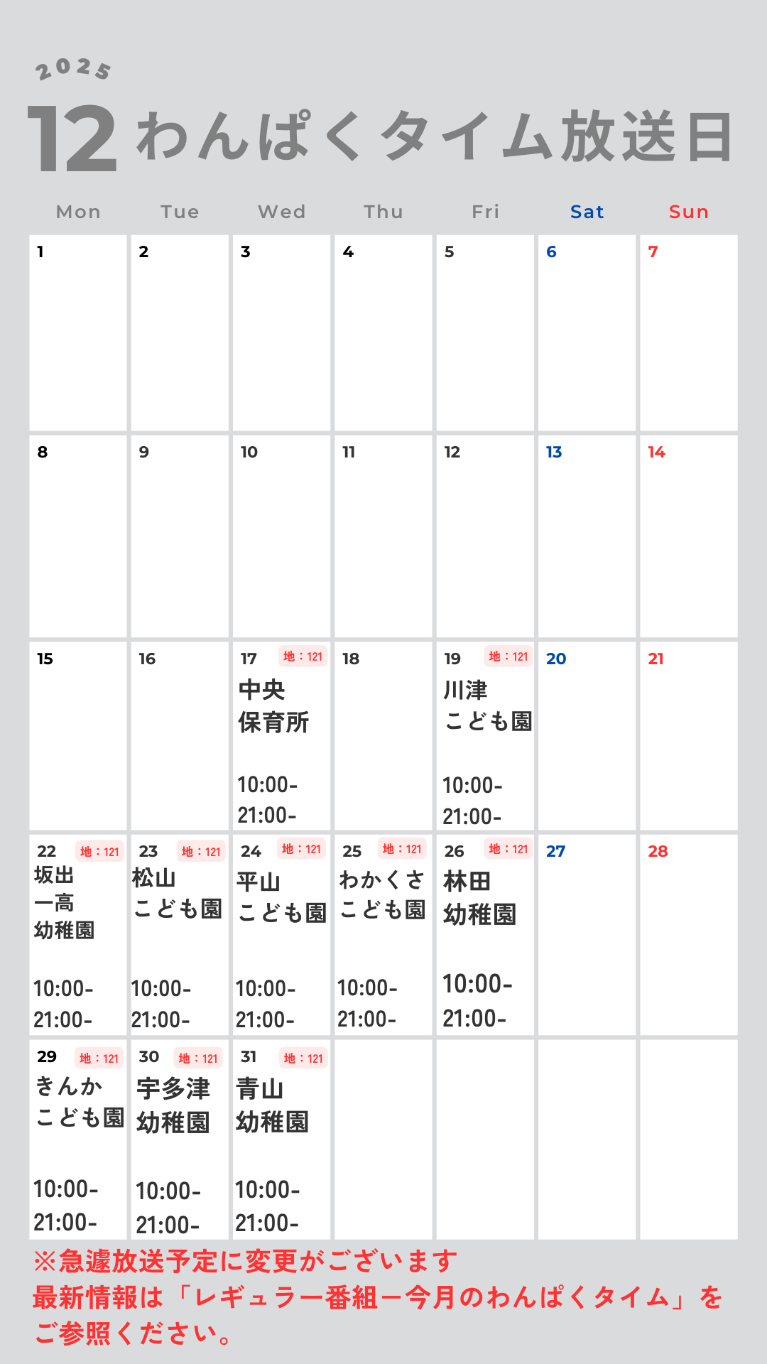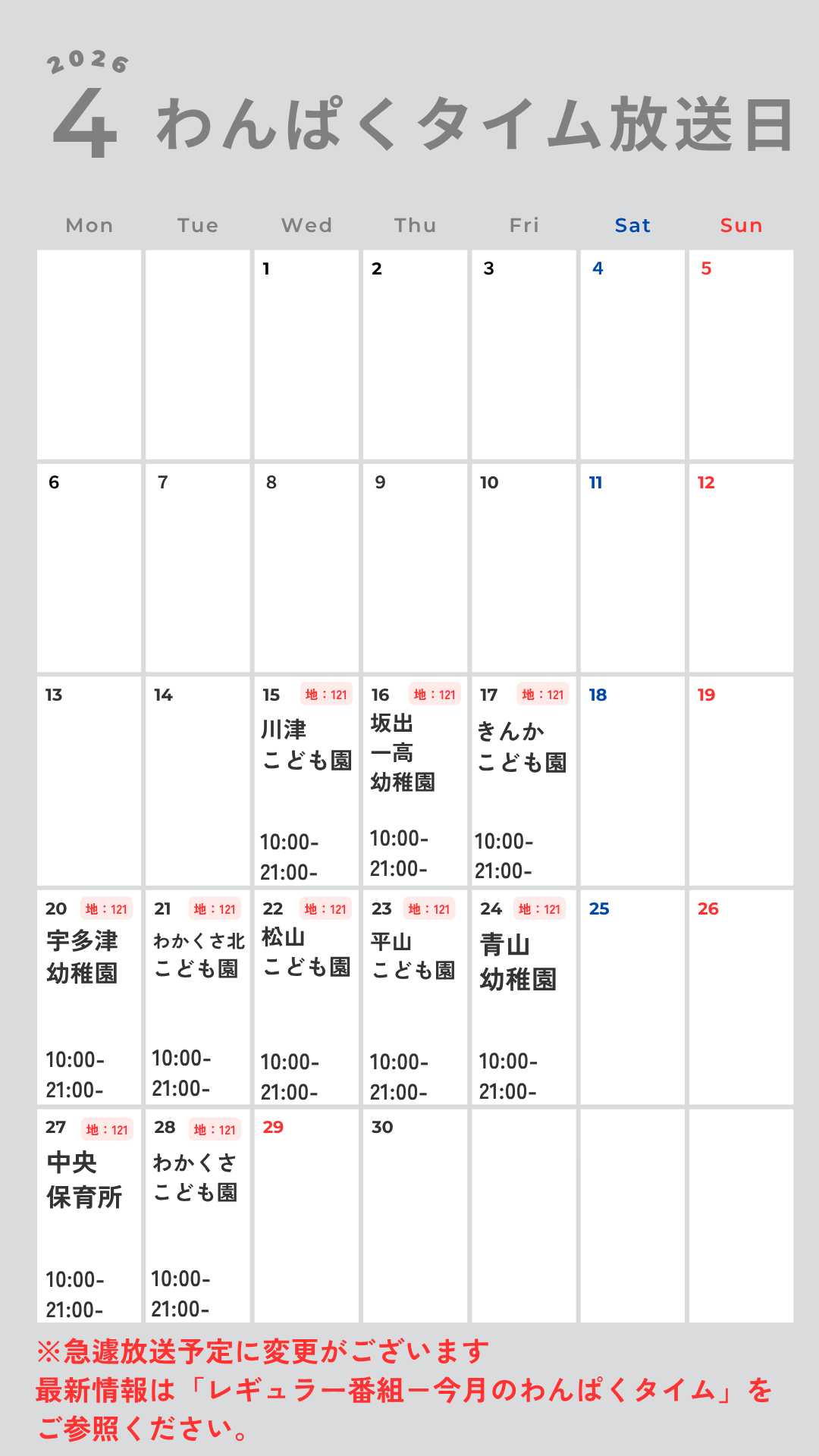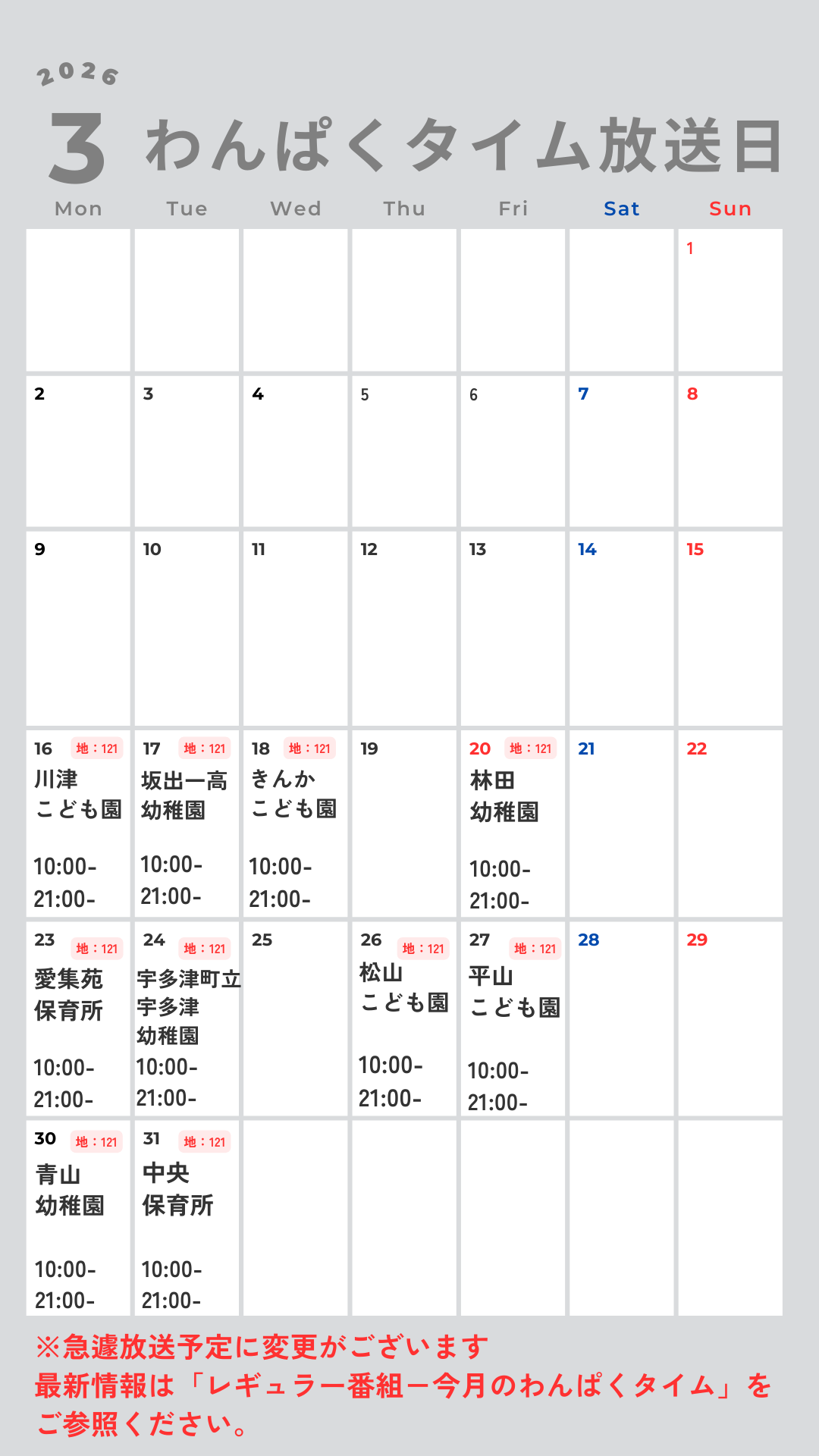 現在配信できていない園については、各園に取材と配信のご相談中です。